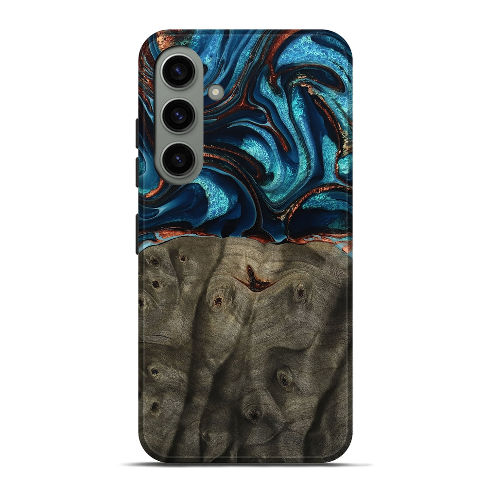 Our Live Edge cases are made from an amazing combination of stabilized wood burl and colored resin. Our stabilization process hardens the wood to protect against cracks and breaks. We do every step of the process at our shop in Northern Indiana. Perfectly fits the Galaxy S24 Plus.