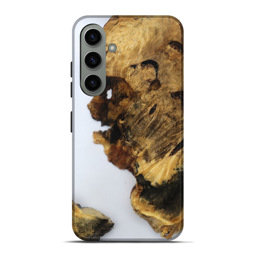 Our Live Edge cases are made from an amazing combination of stabilized wood burl and colored resin. Our stabilization process hardens the wood to protect against cracks and breaks. We do every step of the process at our shop in Northern Indiana. Perfectly fits the Galaxy S24 Plus.