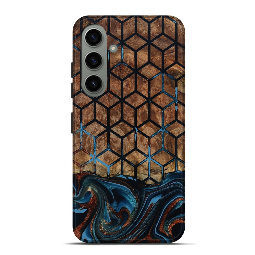 Our Live Edge cases are made from an amazing combination of stabilized wood burl and colored resin. Our stabilization process hardens the wood to protect against cracks and breaks. We do every step of the process at our shop in Northern Indiana. Perfectly fits the Galaxy S24 Plus.