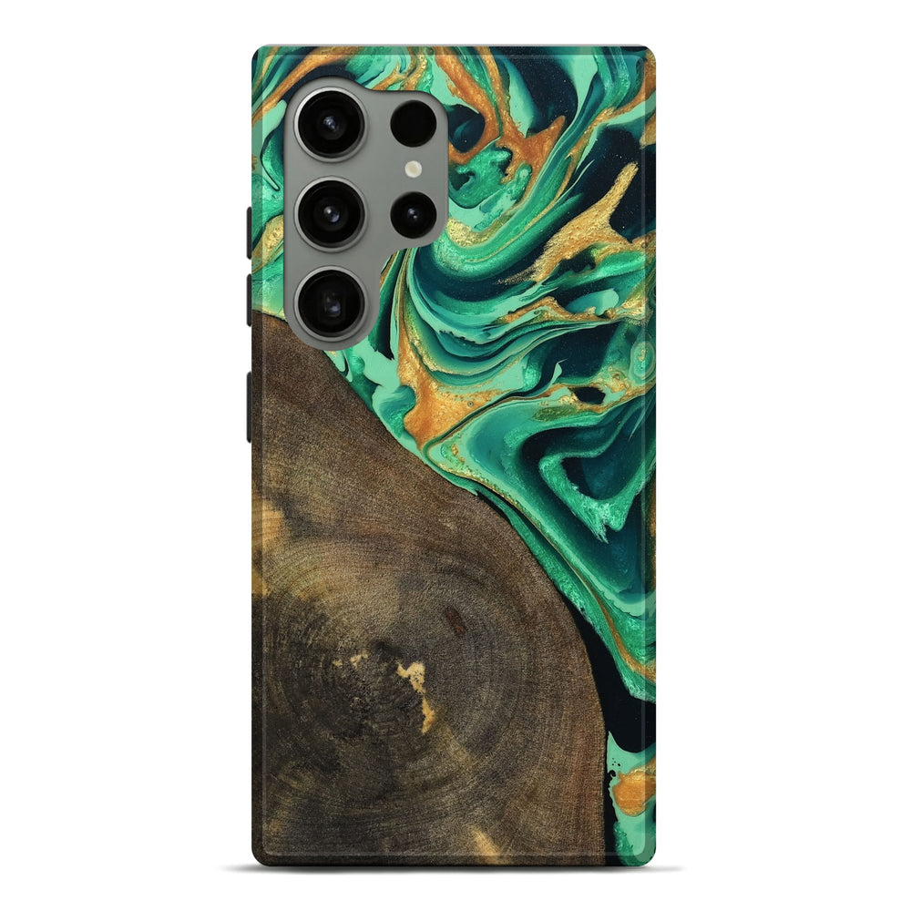 Our Live Edge cases are made from an amazing combination of stabilized wood burl and colored resin. Our stabilization process hardens the wood to protect against cracks and breaks. We do every step of the process at our shop in Northern Indiana. Perfectly fits the Galaxy S24 Ultra.