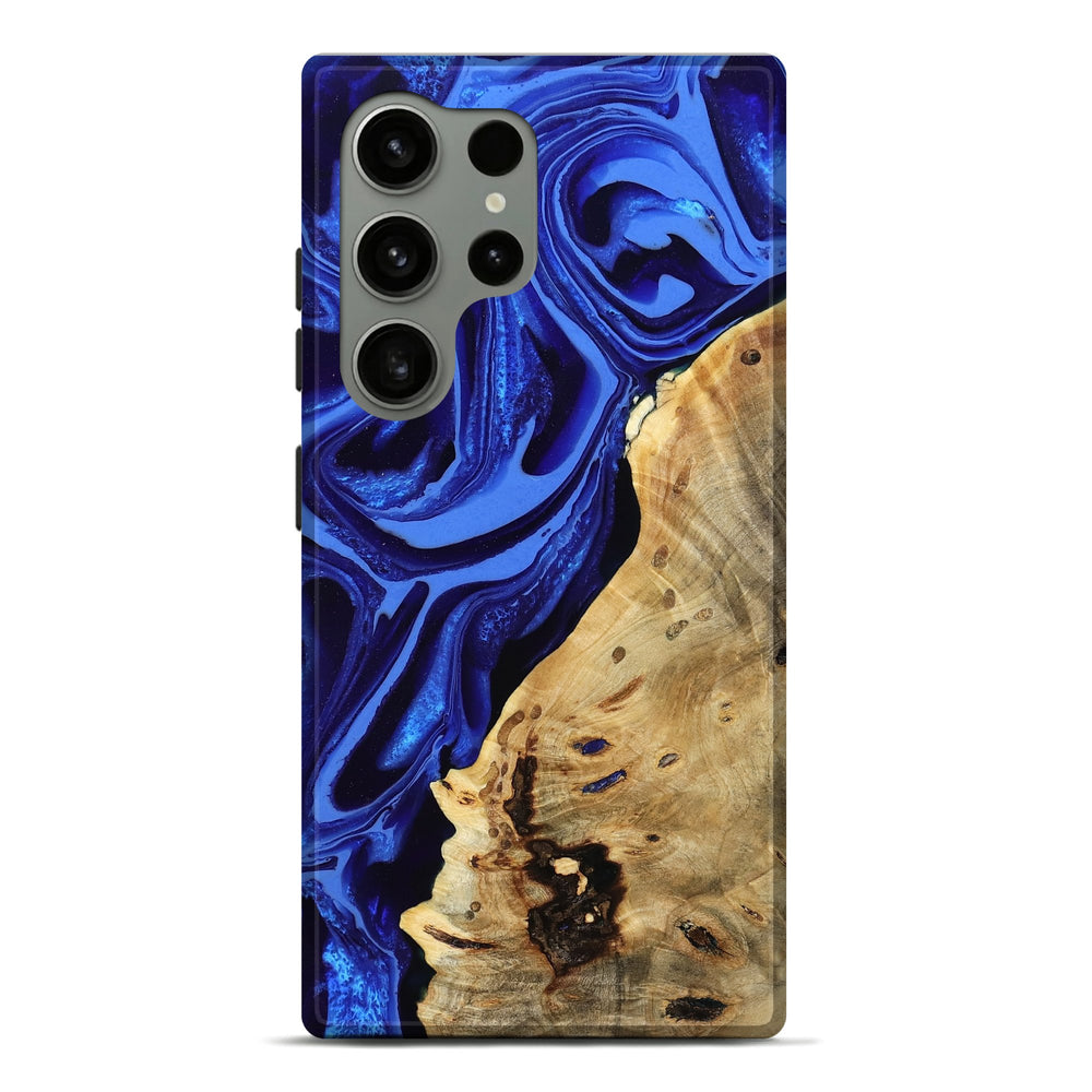 Our Live Edge cases are made from an amazing combination of stabilized wood burl and colored resin. Our stabilization process hardens the wood to protect against cracks and breaks. We do every step of the process at our shop in Northern Indiana. Perfectly fits the Galaxy S24 Ultra.