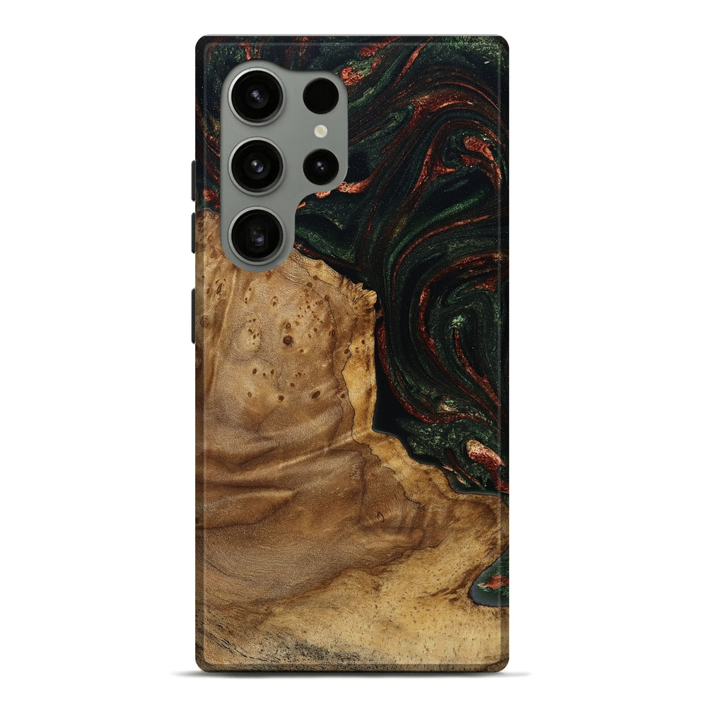 Our Live Edge cases are made from an amazing combination of stabilized wood burl and colored resin. Our stabilization process hardens the wood to protect against cracks and breaks. We do every step of the process at our shop in Northern Indiana. Perfectly fits the Galaxy S24 Ultra.