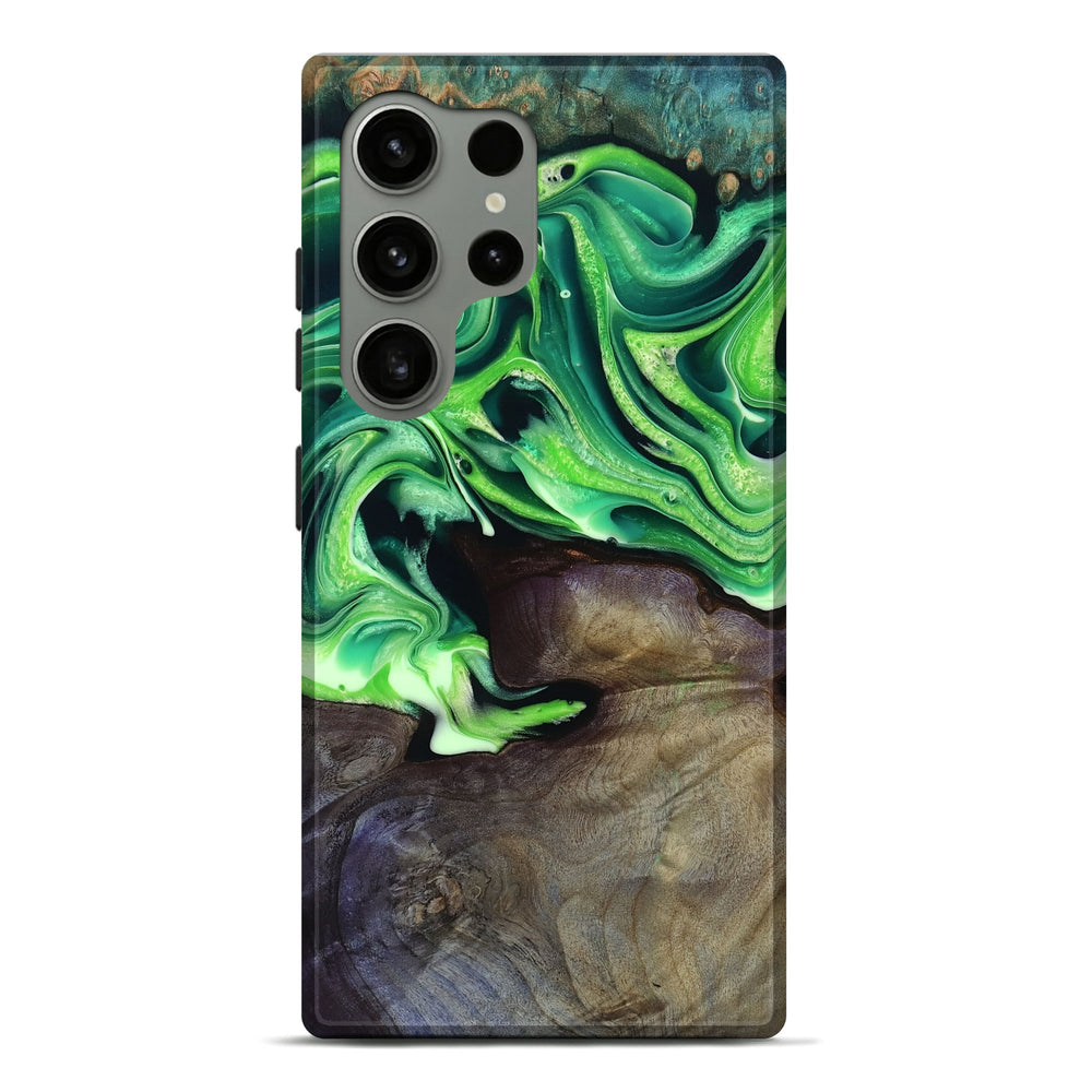 Our Live Edge cases are made from an amazing combination of stabilized wood burl and colored resin. Our stabilization process hardens the wood to protect against cracks and breaks. We do every step of the process at our shop in Northern Indiana. Perfectly fits the Galaxy S24 Ultra.