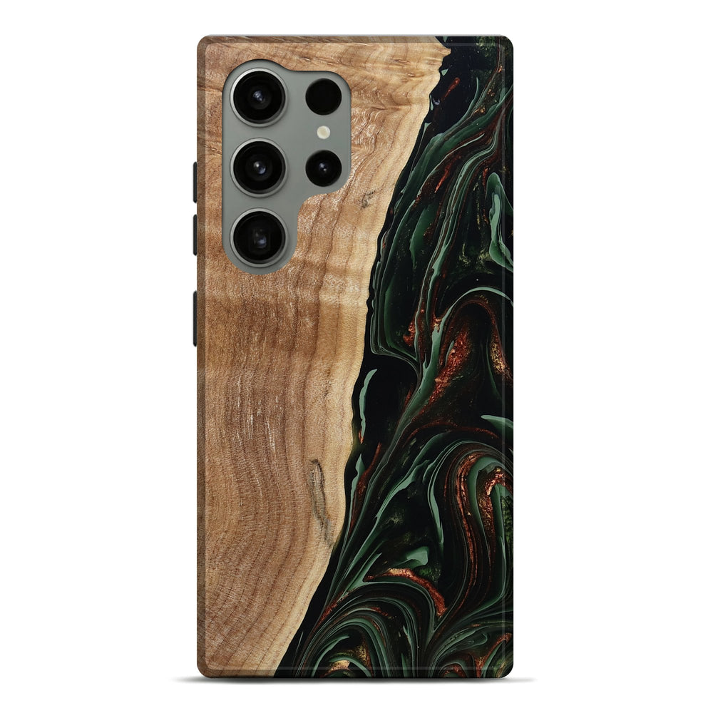 Our Live Edge cases are made from an amazing combination of stabilized wood burl and colored resin. Our stabilization process hardens the wood to protect against cracks and breaks. We do every step of the process at our shop in Northern Indiana. Perfectly fits the Galaxy S24 Ultra.