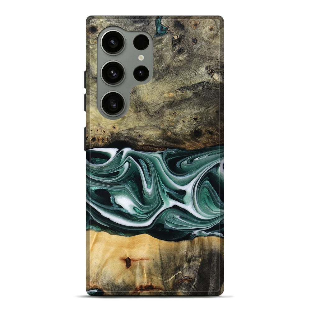 Our Live Edge cases are made from an amazing combination of stabilized wood burl and colored resin. Our stabilization process hardens the wood to protect against cracks and breaks. We do every step of the process at our shop in Northern Indiana. Perfectly fits the Galaxy S24 Ultra.