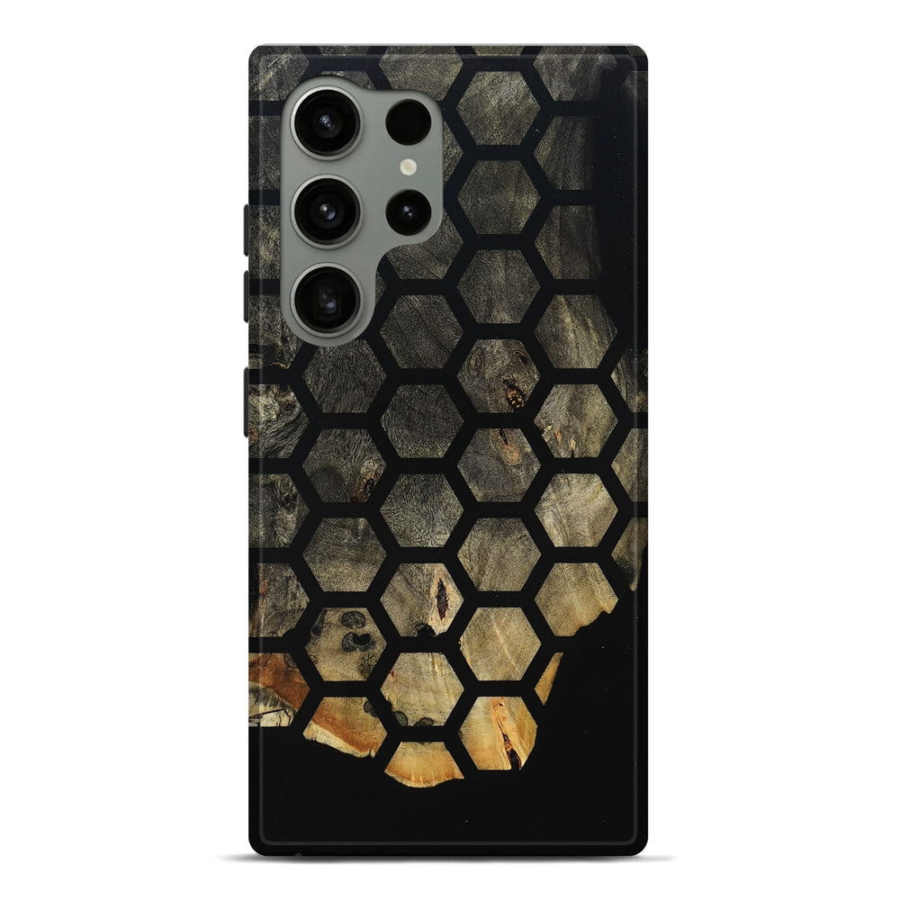 Our Live Edge cases are made from an amazing combination of stabilized wood burl and colored resin. Our stabilization process hardens the wood to protect against cracks and breaks. We do every step of the process at our shop in Northern Indiana. Perfectly fits the Galaxy S24 Ultra.