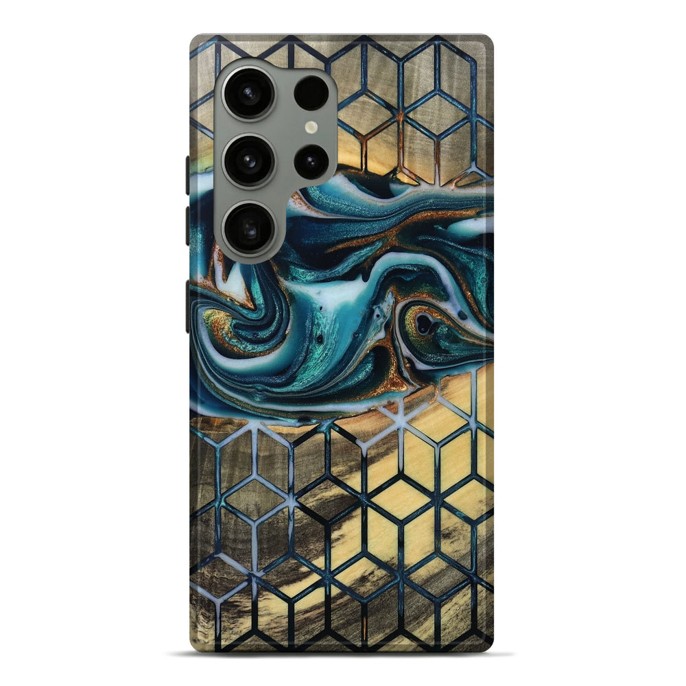 Our Live Edge cases are made from an amazing combination of stabilized wood burl and colored resin. Our stabilization process hardens the wood to protect against cracks and breaks. We do every step of the process at our shop in Northern Indiana. Perfectly fits the Galaxy S24 Ultra.