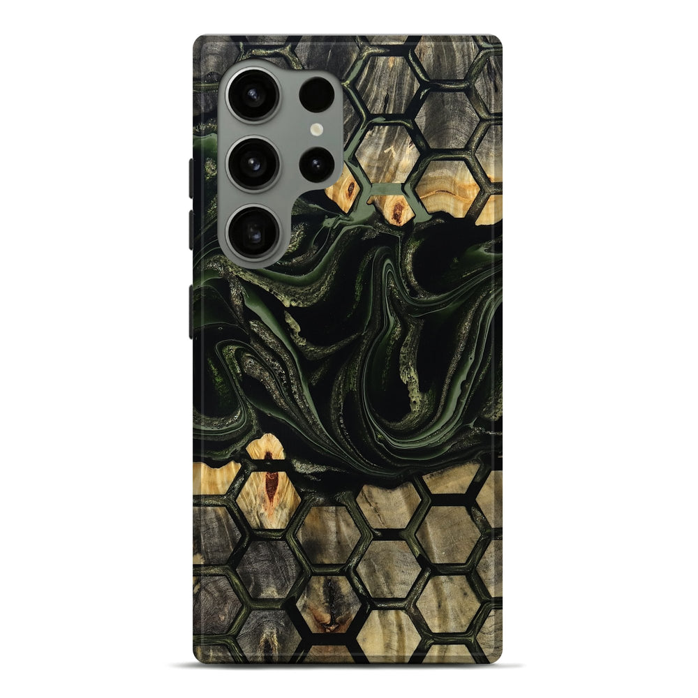 Our Live Edge cases are made from an amazing combination of stabilized wood burl and colored resin. Our stabilization process hardens the wood to protect against cracks and breaks. We do every step of the process at our shop in Northern Indiana. Perfectly fits the Galaxy S24 Ultra.