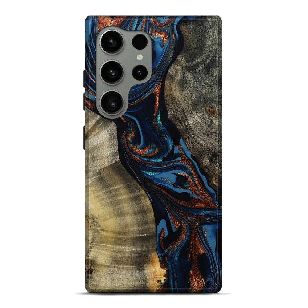 Our Live Edge cases are made from an amazing combination of stabilized wood burl and colored resin. Our stabilization process hardens the wood to protect against cracks and breaks. We do every step of the process at our shop in Northern Indiana. Perfectly fits the Galaxy S24 Ultra.