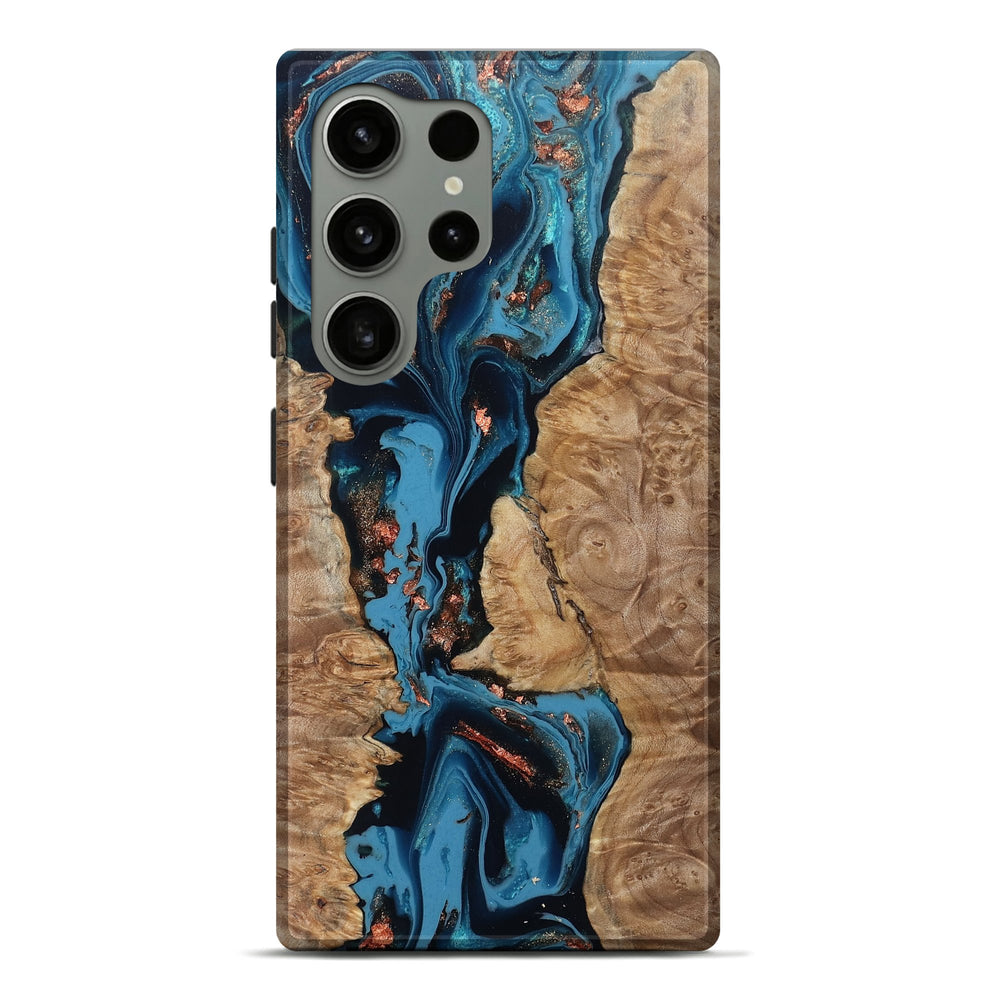 Our Live Edge cases are made from an amazing combination of stabilized wood burl and colored resin. Our stabilization process hardens the wood to protect against cracks and breaks. We do every step of the process at our shop in Northern Indiana. Perfectly fits the Galaxy S24 Ultra.