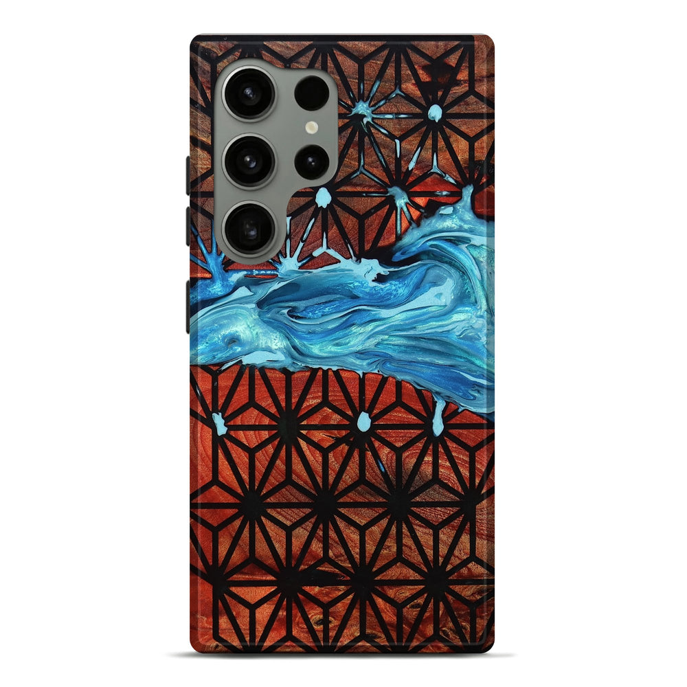 Our Live Edge cases are made from an amazing combination of stabilized wood burl and colored resin. Our stabilization process hardens the wood to protect against cracks and breaks. We do every step of the process at our shop in Northern Indiana. Perfectly fits the Galaxy S24 Ultra.
