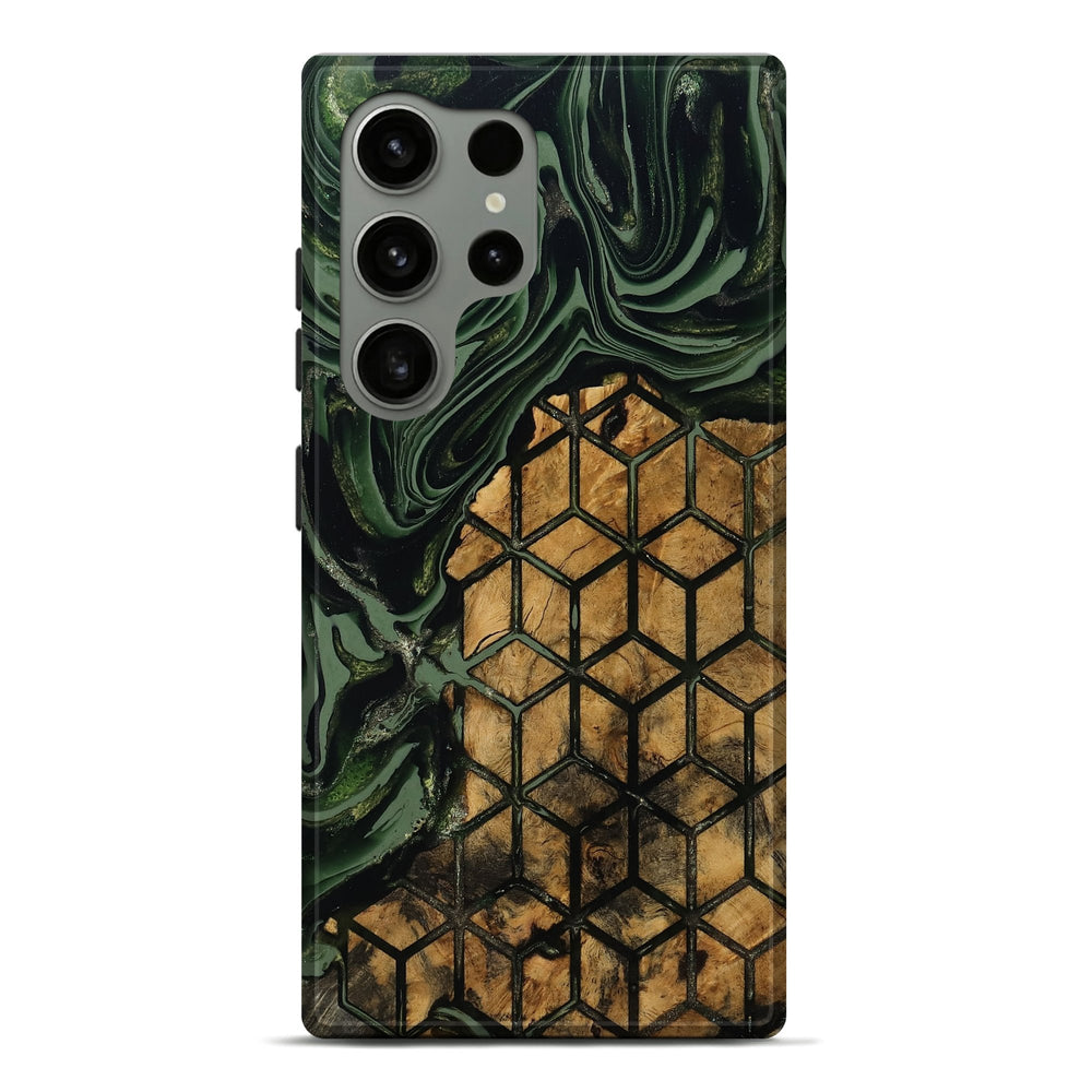 Our Live Edge cases are made from an amazing combination of stabilized wood burl and colored resin. Our stabilization process hardens the wood to protect against cracks and breaks. We do every step of the process at our shop in Northern Indiana. Perfectly fits the Galaxy S24 Ultra.