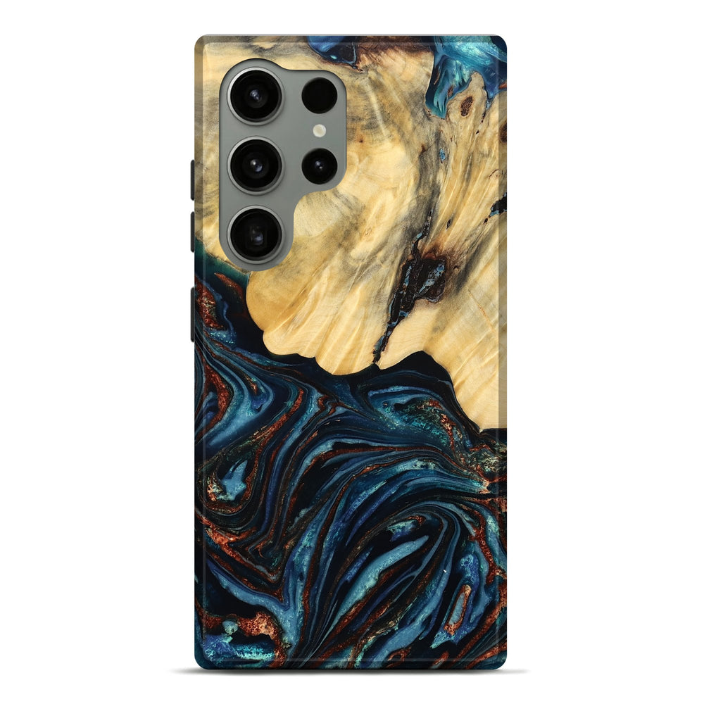 Our Live Edge cases are made from an amazing combination of stabilized wood burl and colored resin. Our stabilization process hardens the wood to protect against cracks and breaks. We do every step of the process at our shop in Northern Indiana. Perfectly fits the Galaxy S24 Ultra.