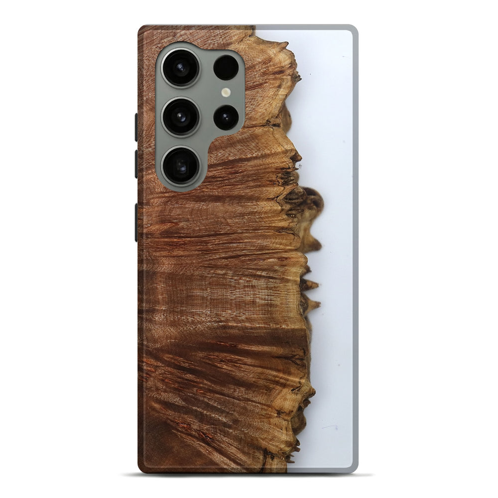 Our Live Edge cases are made from an amazing combination of stabilized wood burl and colored resin. Our stabilization process hardens the wood to protect against cracks and breaks. We do every step of the process at our shop in Northern Indiana. Perfectly fits the Galaxy S24 Ultra.
