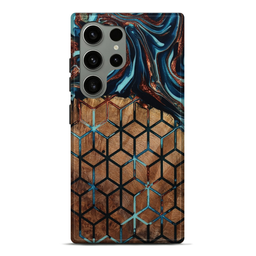Our Live Edge cases are made from an amazing combination of stabilized wood burl and colored resin. Our stabilization process hardens the wood to protect against cracks and breaks. We do every step of the process at our shop in Northern Indiana. Perfectly fits the Galaxy S24 Ultra.