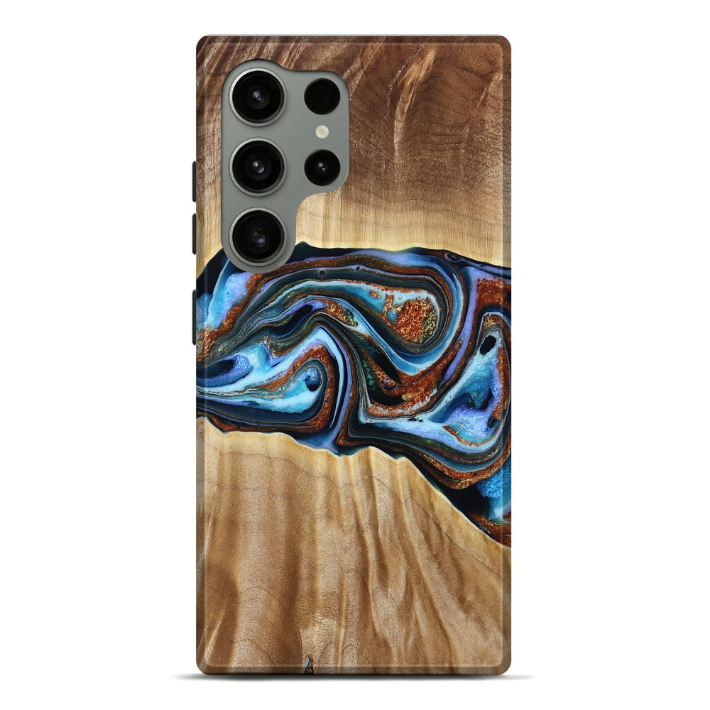 Our Live Edge cases are made from an amazing combination of stabilized wood burl and colored resin. Our stabilization process hardens the wood to protect against cracks and breaks. We do every step of the process at our shop in Northern Indiana. Perfectly fits the Galaxy S24 Ultra.