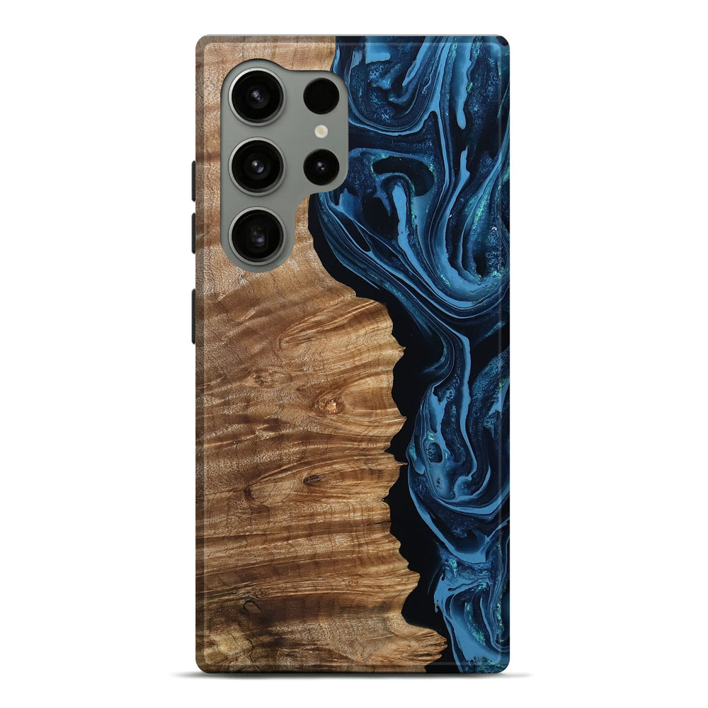 Our Live Edge cases are made from an amazing combination of stabilized wood burl and colored resin. Our stabilization process hardens the wood to protect against cracks and breaks. We do every step of the process at our shop in Northern Indiana. Perfectly fits the Galaxy S24 Ultra.