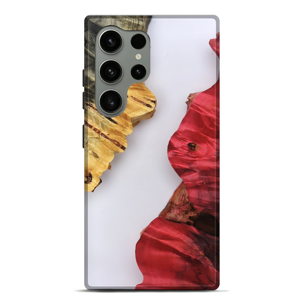 Our Live Edge cases are made from an amazing combination of stabilized wood burl and colored resin. Our stabilization process hardens the wood to protect against cracks and breaks. We do every step of the process at our shop in Northern Indiana. Perfectly fits the Galaxy S24 Ultra.