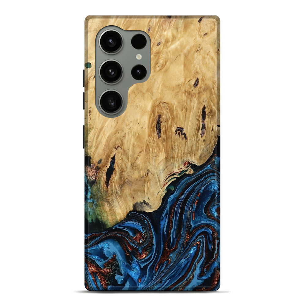 Our Live Edge cases are made from an amazing combination of stabilized wood burl and colored resin. Our stabilization process hardens the wood to protect against cracks and breaks. We do every step of the process at our shop in Northern Indiana. Perfectly fits the Galaxy S24 Ultra.