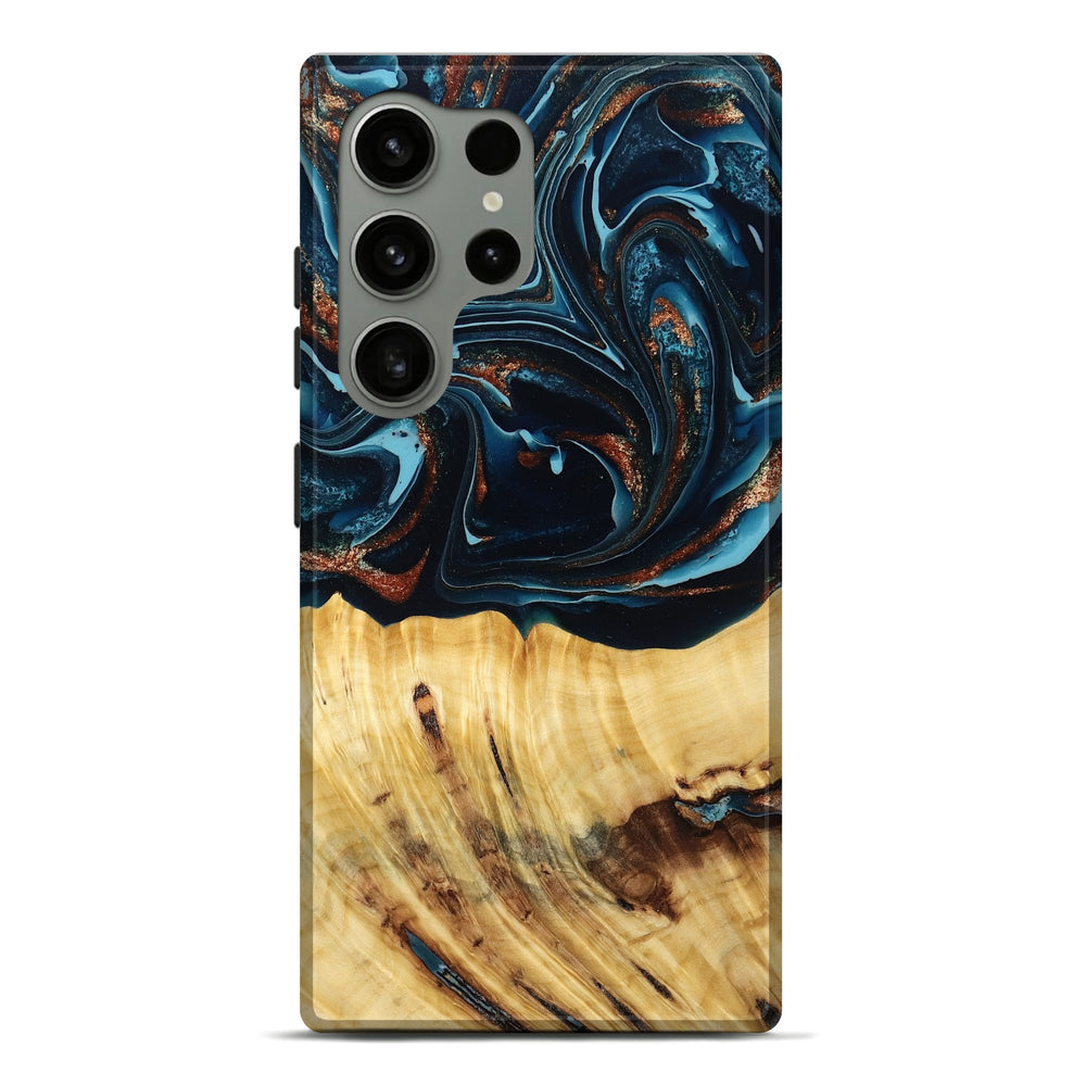 Our Live Edge cases are made from an amazing combination of stabilized wood burl and colored resin. Our stabilization process hardens the wood to protect against cracks and breaks. We do every step of the process at our shop in Northern Indiana. Perfectly fits the Galaxy S24 Ultra.