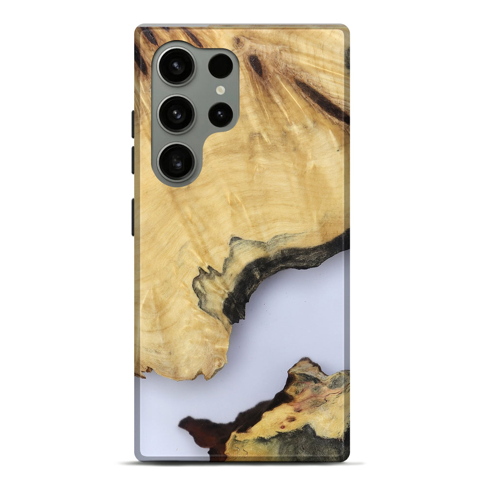 Our Live Edge cases are made from an amazing combination of stabilized wood burl and colored resin. Our stabilization process hardens the wood to protect against cracks and breaks. We do every step of the process at our shop in Northern Indiana. Perfectly fits the Galaxy S24 Ultra.