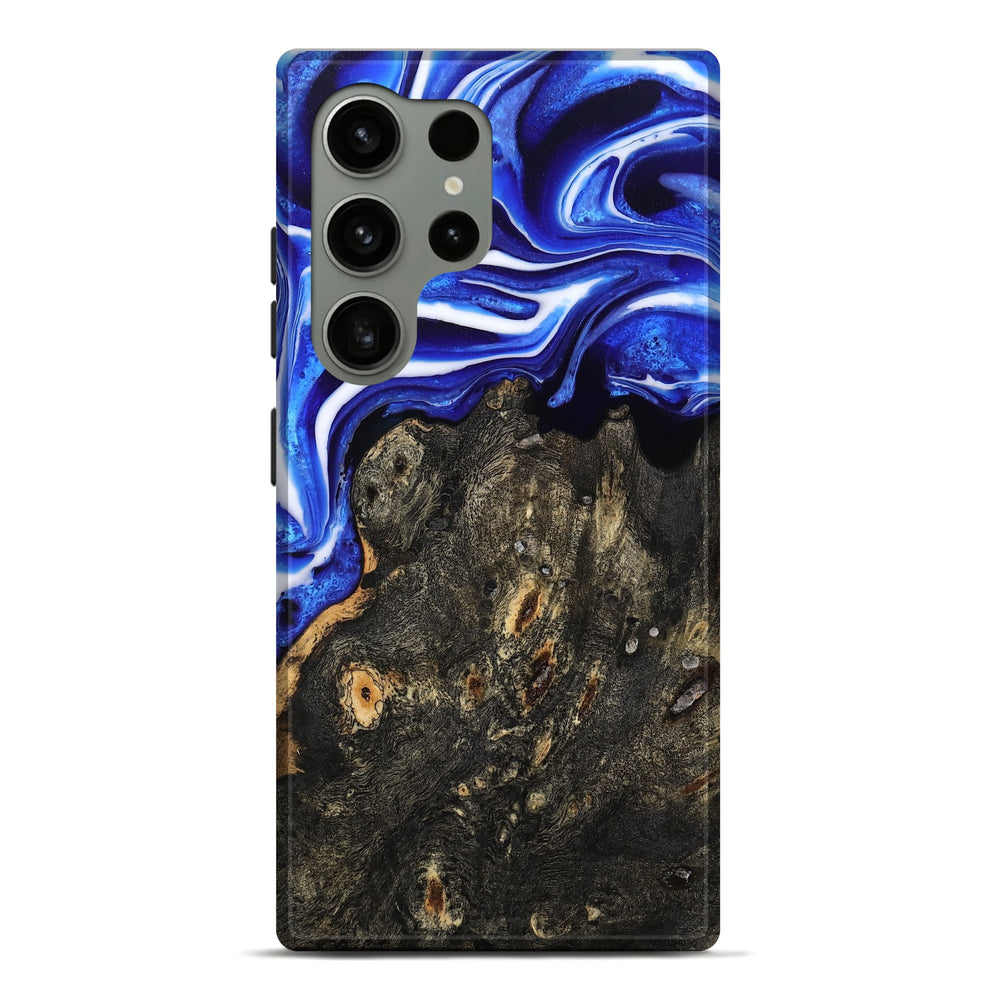 Our Live Edge cases are made from an amazing combination of stabilized wood burl and colored resin. Our stabilization process hardens the wood to protect against cracks and breaks. We do every step of the process at our shop in Northern Indiana. Perfectly fits the Galaxy S24 Ultra.