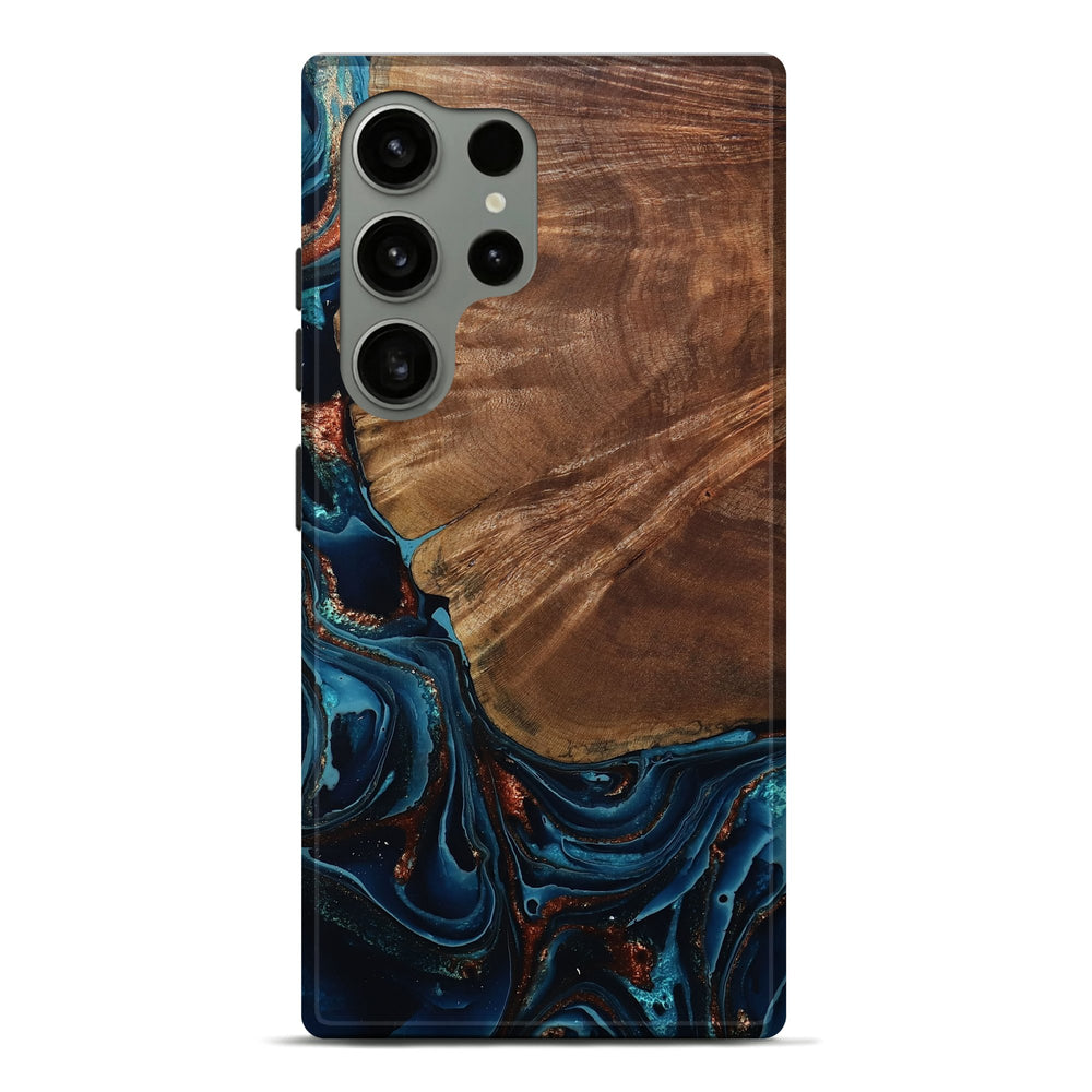 Our Live Edge cases are made from an amazing combination of stabilized wood burl and colored resin. Our stabilization process hardens the wood to protect against cracks and breaks. We do every step of the process at our shop in Northern Indiana. Perfectly fits the Galaxy S24 Ultra.