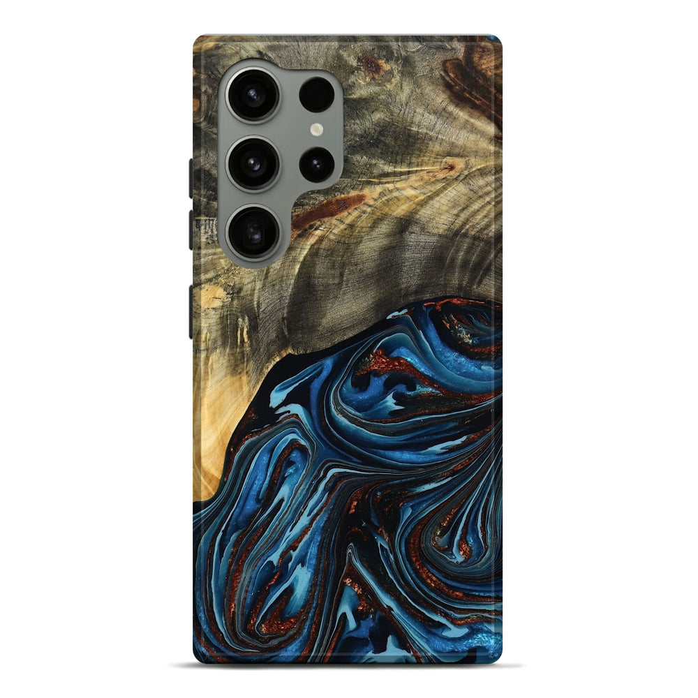 Our Live Edge cases are made from an amazing combination of stabilized wood burl and colored resin. Our stabilization process hardens the wood to protect against cracks and breaks. We do every step of the process at our shop in Northern Indiana. Perfectly fits the Galaxy S24 Ultra.