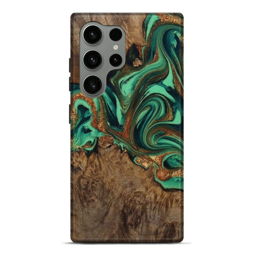 Our Live Edge cases are made from an amazing combination of stabilized wood burl and colored resin. Our stabilization process hardens the wood to protect against cracks and breaks. We do every step of the process at our shop in Northern Indiana. Perfectly fits the Galaxy S24 Ultra.
