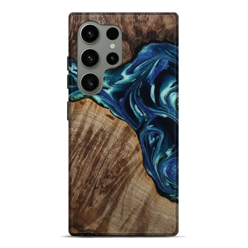 Our Live Edge cases are made from an amazing combination of stabilized wood burl and colored resin. Our stabilization process hardens the wood to protect against cracks and breaks. We do every step of the process at our shop in Northern Indiana. Perfectly fits the Galaxy S24 Ultra.