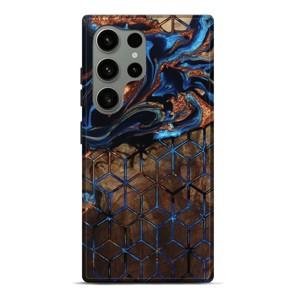 Our Live Edge cases are made from an amazing combination of stabilized wood burl and colored resin. Our stabilization process hardens the wood to protect against cracks and breaks. We do every step of the process at our shop in Northern Indiana. Perfectly fits the Galaxy S24 Ultra.