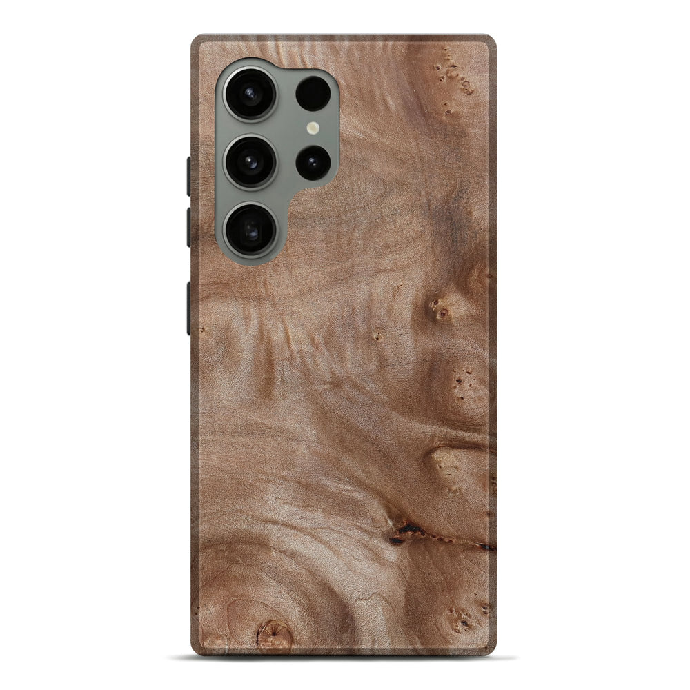 Our Live Edge cases are made from an amazing combination of stabilized wood burl and colored resin. Our stabilization process hardens the wood to protect against cracks and breaks. We do every step of the process at our shop in Northern Indiana. Perfectly fits the Galaxy S24 Ultra.