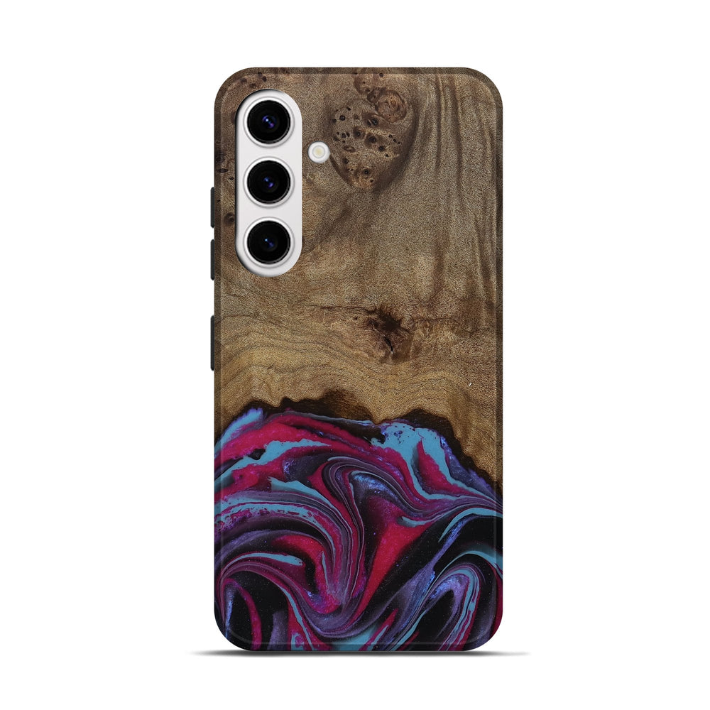 Our Live Edge cases are made from an amazing combination of stabilized wood burl and colored resin. Our stabilization process hardens the wood to protect against cracks and breaks. We do every step of the process at our shop in Northern Indiana. Perfectly fits the Galaxy S25.