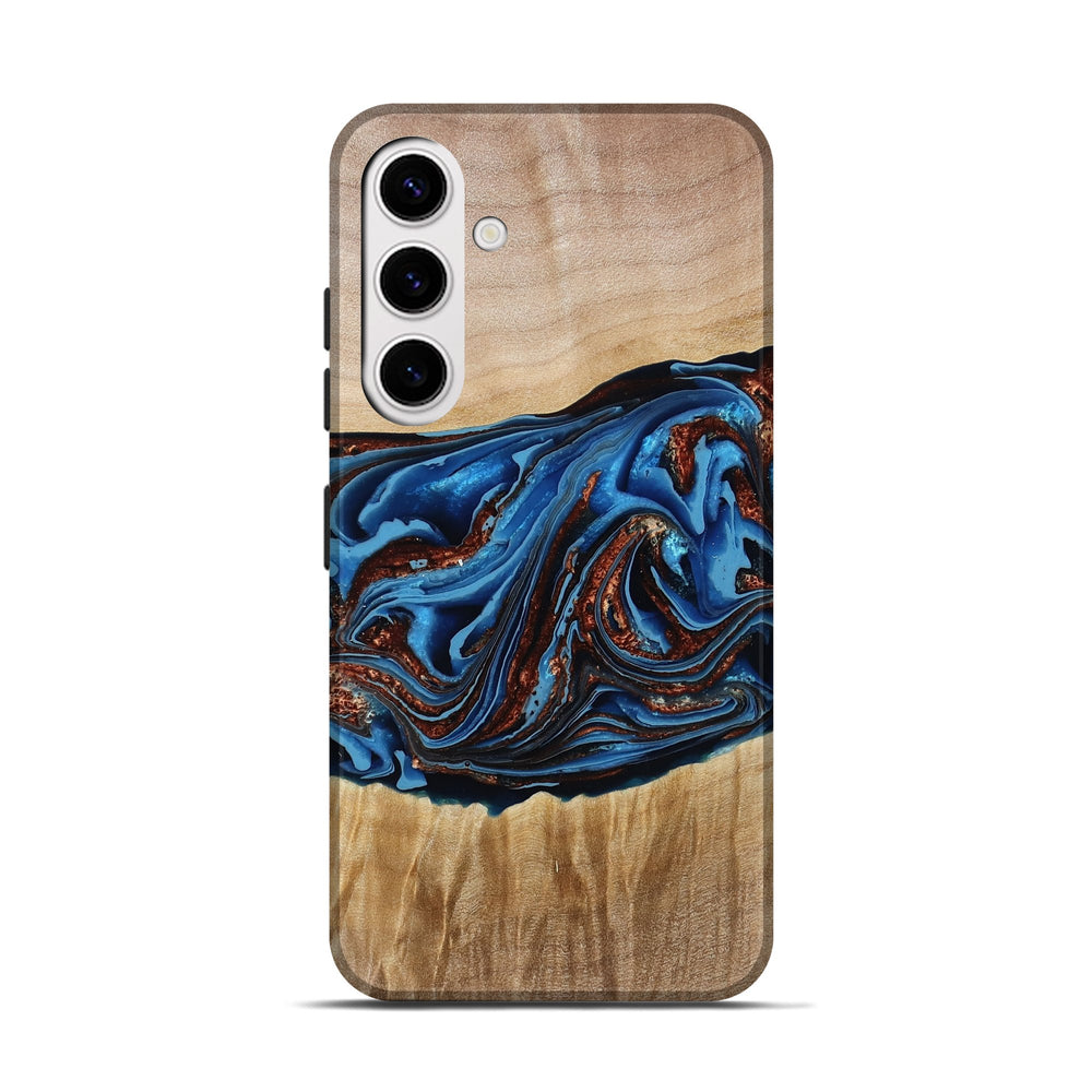 Our Live Edge cases are made from an amazing combination of stabilized wood burl and colored resin. Our stabilization process hardens the wood to protect against cracks and breaks. We do every step of the process at our shop in Northern Indiana. Perfectly fits the Galaxy S25.
