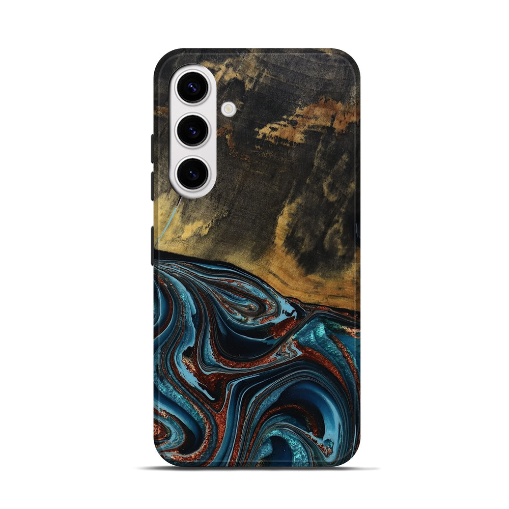 Our Live Edge cases are made from an amazing combination of stabilized wood burl and colored resin. Our stabilization process hardens the wood to protect against cracks and breaks. We do every step of the process at our shop in Northern Indiana. Perfectly fits the Galaxy S25.
