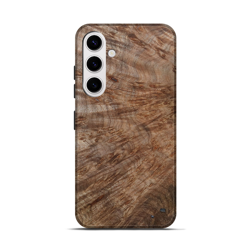 Our Live Edge cases are made from an amazing combination of stabilized wood burl and colored resin. Our stabilization process hardens the wood to protect against cracks and breaks. We do every step of the process at our shop in Northern Indiana. Perfectly fits the Galaxy S25.