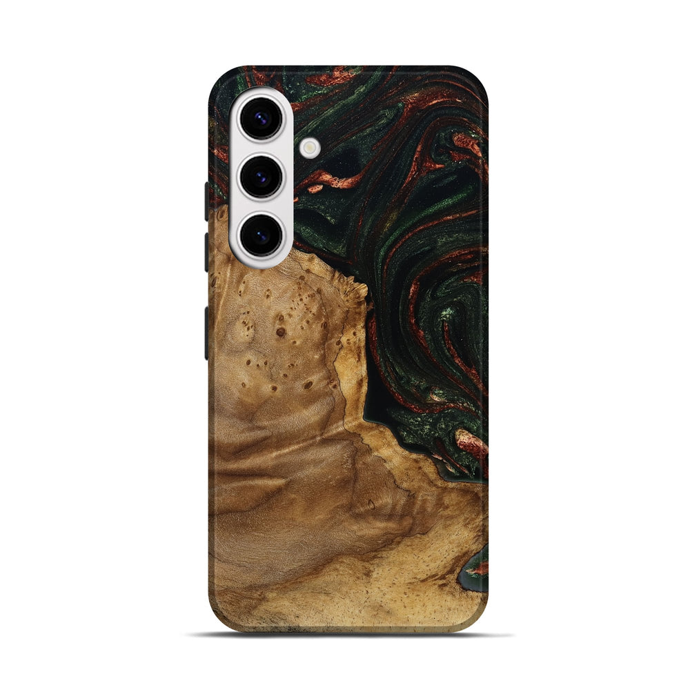 Our Live Edge cases are made from an amazing combination of stabilized wood burl and colored resin. Our stabilization process hardens the wood to protect against cracks and breaks. We do every step of the process at our shop in Northern Indiana. Perfectly fits the Galaxy S25.
