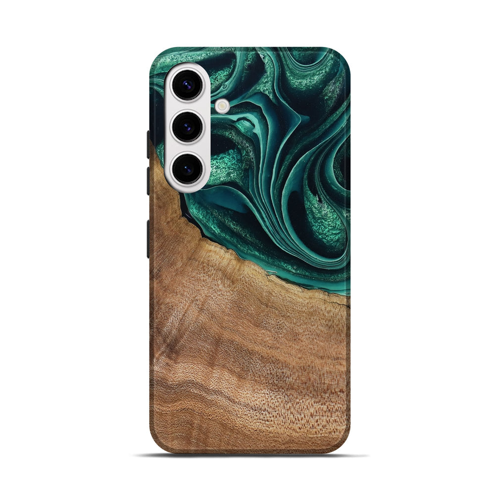 Our Live Edge cases are made from an amazing combination of stabilized wood burl and colored resin. Our stabilization process hardens the wood to protect against cracks and breaks. We do every step of the process at our shop in Northern Indiana. Perfectly fits the Galaxy S25.