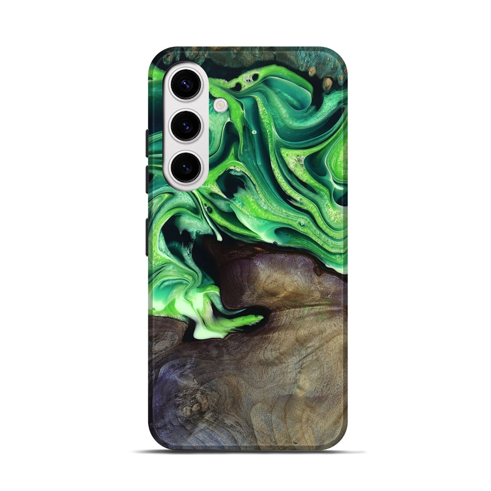 Our Live Edge cases are made from an amazing combination of stabilized wood burl and colored resin. Our stabilization process hardens the wood to protect against cracks and breaks. We do every step of the process at our shop in Northern Indiana. Perfectly fits the Galaxy S25.