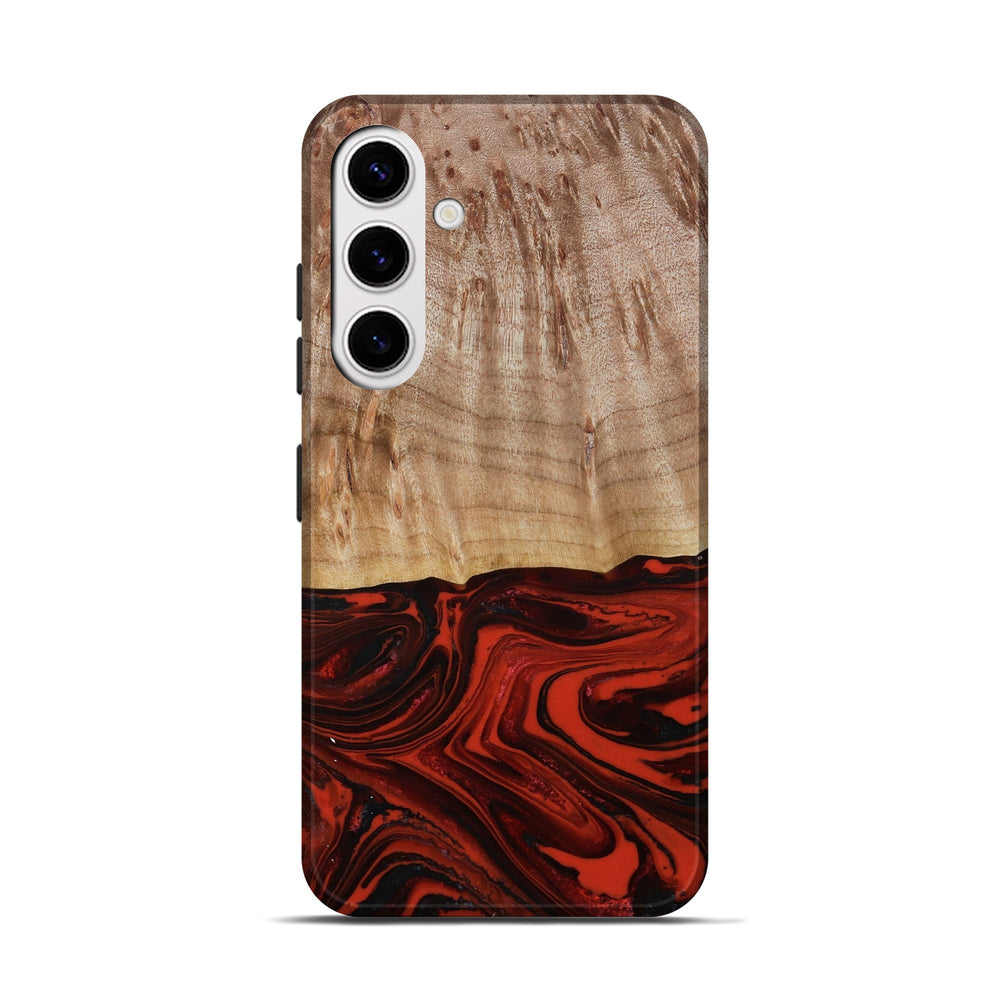 Our Live Edge cases are made from an amazing combination of stabilized wood burl and colored resin. Our stabilization process hardens the wood to protect against cracks and breaks. We do every step of the process at our shop in Northern Indiana. Perfectly fits the Galaxy S25.