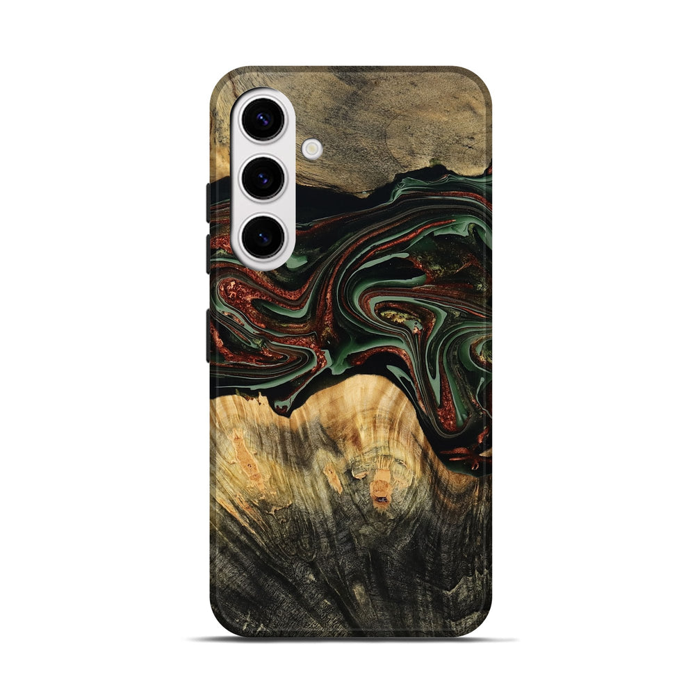 Our Live Edge cases are made from an amazing combination of stabilized wood burl and colored resin. Our stabilization process hardens the wood to protect against cracks and breaks. We do every step of the process at our shop in Northern Indiana. Perfectly fits the Galaxy S25.