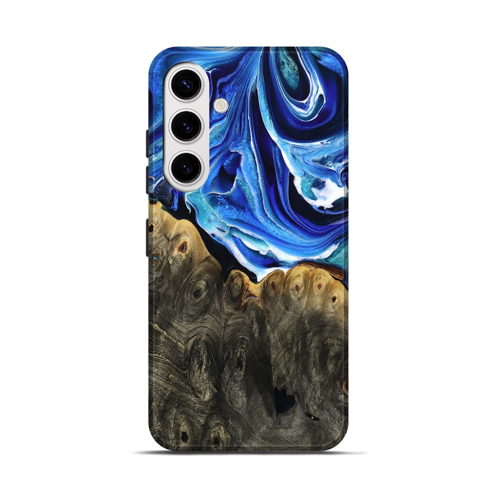 Our Live Edge cases are made from an amazing combination of stabilized wood burl and colored resin. Our stabilization process hardens the wood to protect against cracks and breaks. We do every step of the process at our shop in Northern Indiana. Perfectly fits the Galaxy S25.