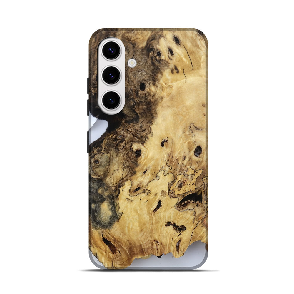 Our Live Edge cases are made from an amazing combination of stabilized wood burl and colored resin. Our stabilization process hardens the wood to protect against cracks and breaks. We do every step of the process at our shop in Northern Indiana. Perfectly fits the Galaxy S25.
