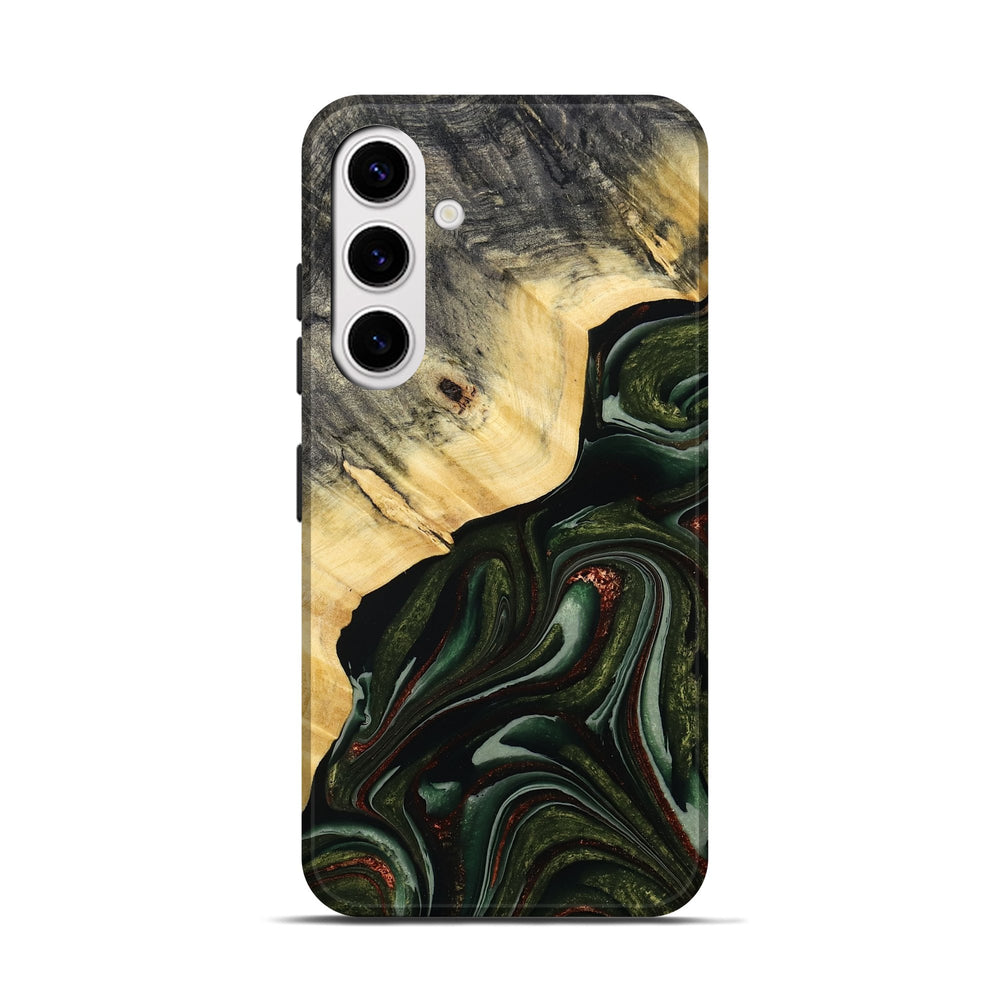 Our Live Edge cases are made from an amazing combination of stabilized wood burl and colored resin. Our stabilization process hardens the wood to protect against cracks and breaks. We do every step of the process at our shop in Northern Indiana. Perfectly fits the Galaxy S25.