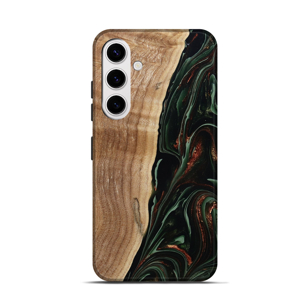 Our Live Edge cases are made from an amazing combination of stabilized wood burl and colored resin. Our stabilization process hardens the wood to protect against cracks and breaks. We do every step of the process at our shop in Northern Indiana. Perfectly fits the Galaxy S25.