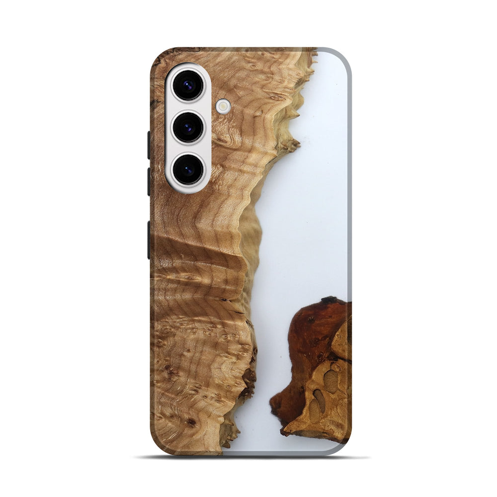 Our Live Edge cases are made from an amazing combination of stabilized wood burl and colored resin. Our stabilization process hardens the wood to protect against cracks and breaks. We do every step of the process at our shop in Northern Indiana. Perfectly fits the Galaxy S25.
