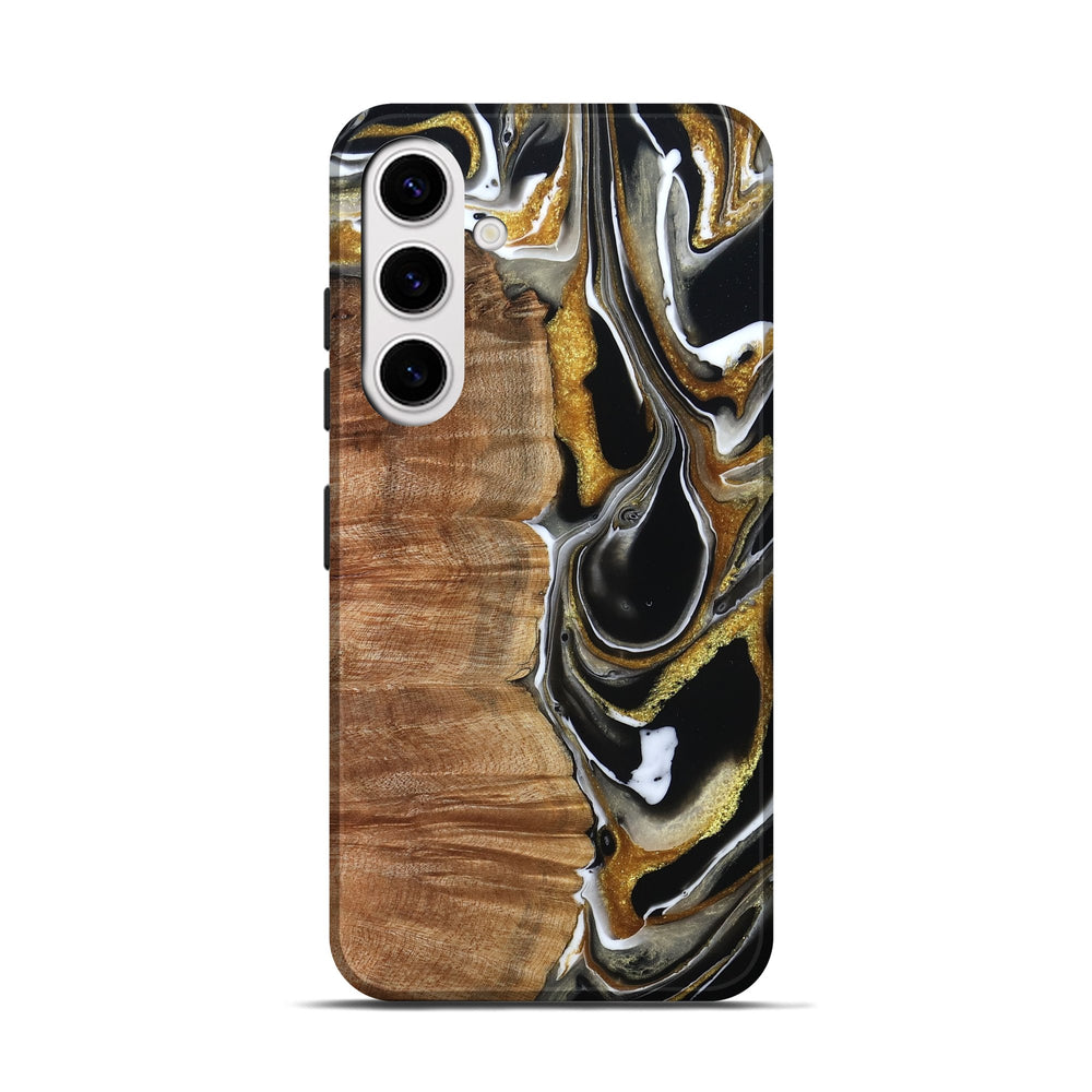Our Live Edge cases are made from an amazing combination of stabilized wood burl and colored resin. Our stabilization process hardens the wood to protect against cracks and breaks. We do every step of the process at our shop in Northern Indiana. Perfectly fits the Galaxy S25.