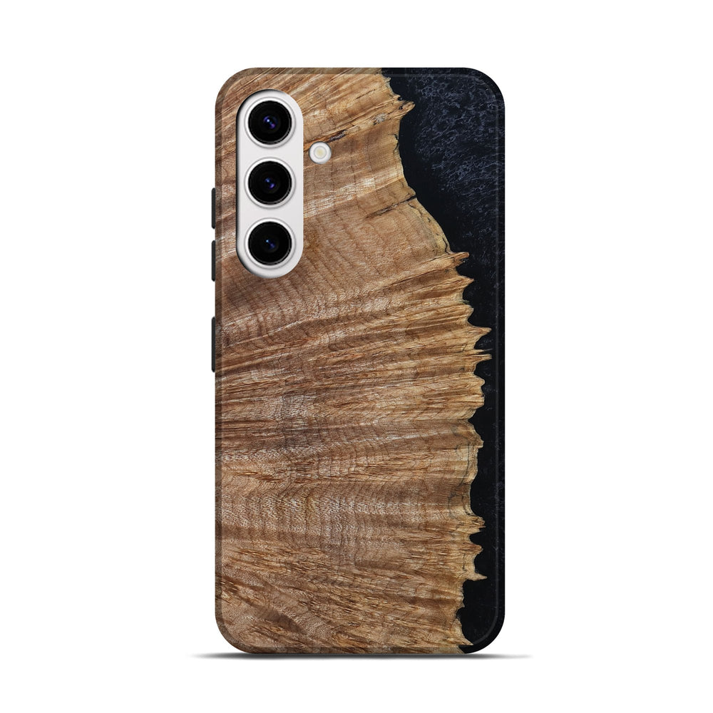 Our Live Edge cases are made from an amazing combination of stabilized wood burl and colored resin. Our stabilization process hardens the wood to protect against cracks and breaks. We do every step of the process at our shop in Northern Indiana. Perfectly fits the Galaxy S25.