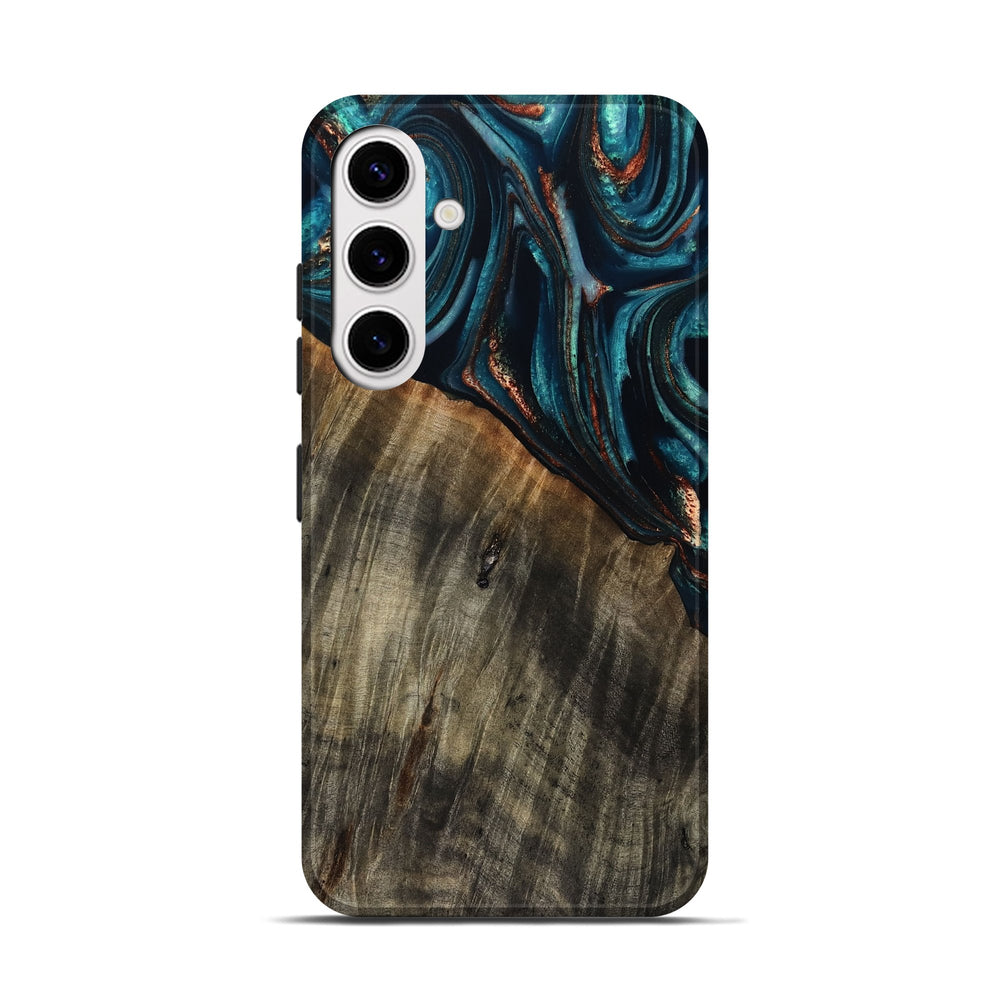 Our Live Edge cases are made from an amazing combination of stabilized wood burl and colored resin. Our stabilization process hardens the wood to protect against cracks and breaks. We do every step of the process at our shop in Northern Indiana. Perfectly fits the Galaxy S25.