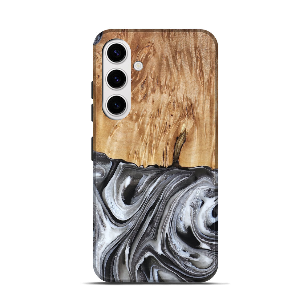 Our Live Edge cases are made from an amazing combination of stabilized wood burl and colored resin. Our stabilization process hardens the wood to protect against cracks and breaks. We do every step of the process at our shop in Northern Indiana. Perfectly fits the Galaxy S25.